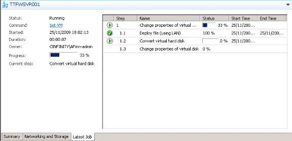 Once the job is done you should check out your VM. You can see above that the disk is now a dynamic disk. And notice how much space I’ve saved? I’ve gone from 20GB down to 12.5GB. I’ve just saved my employer 40% of the cost to store that VM with a couple of mouse clicks while waiting for my dinner. That goes to back up my recent blog post about simpler and more cost effective storage. And like I said then, I’ve lost nothing in performance because I am running Windows Server 2008 R2.
